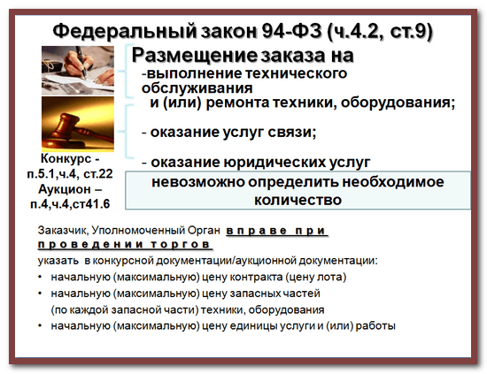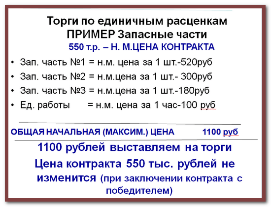 Сегодня хочу поговорить о применении единичных расценок при размещении заказов. Что это такое? Когда и каким образом можно применять? Давайте разберемся. Ведь когда мы размещаем заказ, то обязательно должны указывать необходимое количество закупаемой продукции. Так вот если речь идет о запасных частях к технике или оборудованию, услугах связи или юридических услугах, то заказчику предоставлена возможность не указывать в контракте количество, а определить победителя по единичным расценкам.