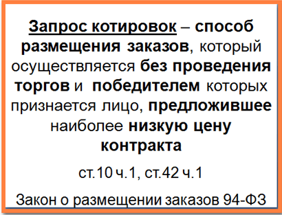 Если спросить любого заказчика: «Какой Ваш любимый способ размещения заказа?» Девяносто процентов ответит: «Запрос котировок«. Чем привлекает этот способ?