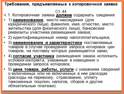 3. В отличии от торгов, участник не предоставляет никаких документов, кроме котировочной заявки.