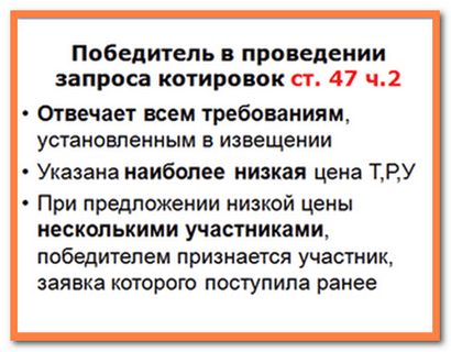 Комиссия определяет победителя по одному критерию — наименьшая цена.