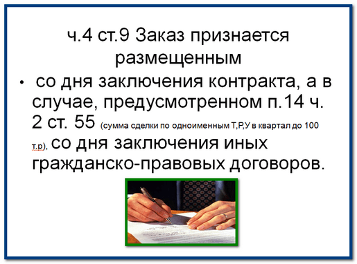 Однако следует не забывать, что в соответствии с частью 1 статьи 18 в реестр контрактов не включаются контракты и иные гражданско-правовые договоры, заключенные в соответствии с п.14 ч.2 ст.55.
